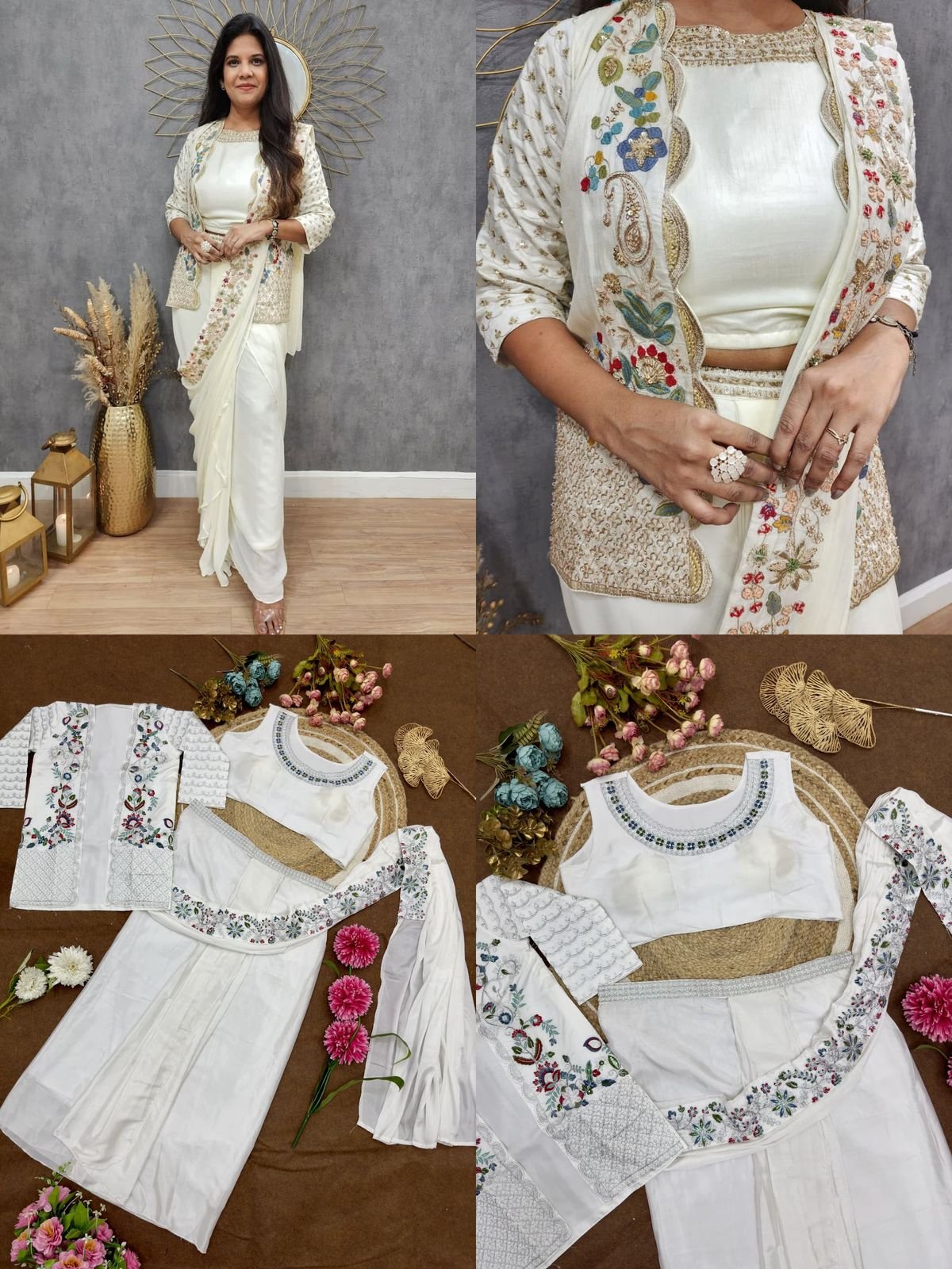 Chinnon Silk Jacket Drape Ready To Wear Saree